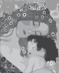 Inspired by Gustav Klimt (an Austrian painter who was prominent at the turn of the 20th century), this collage quilt captures the adoration of a mother for her child.